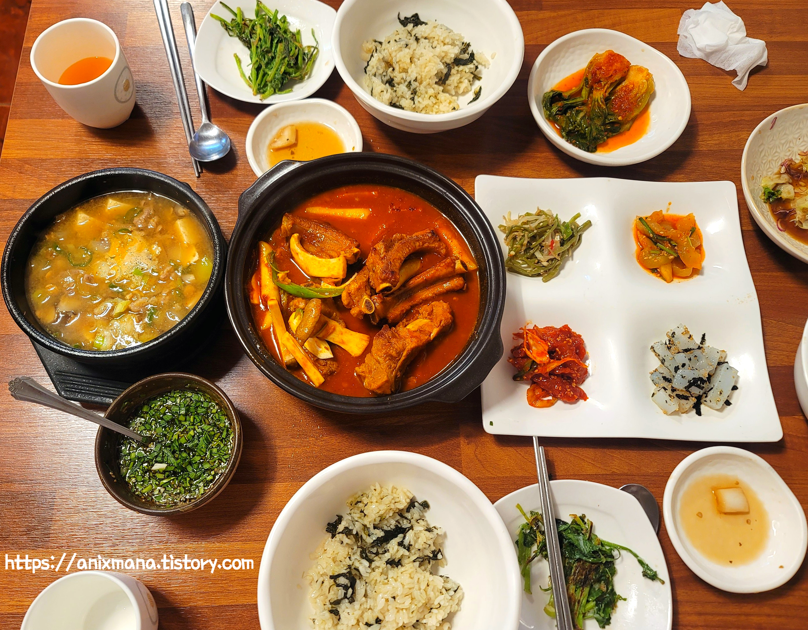 그래도 푸욱~ 삶아 살과 뼈가 잘 발라지니~ 먹기 정말 편하더라고요! 그리고 등갈비가 메인이라고는 하나 다른 반찬들도 여럿있어, 부족하지는 않았습니다.
