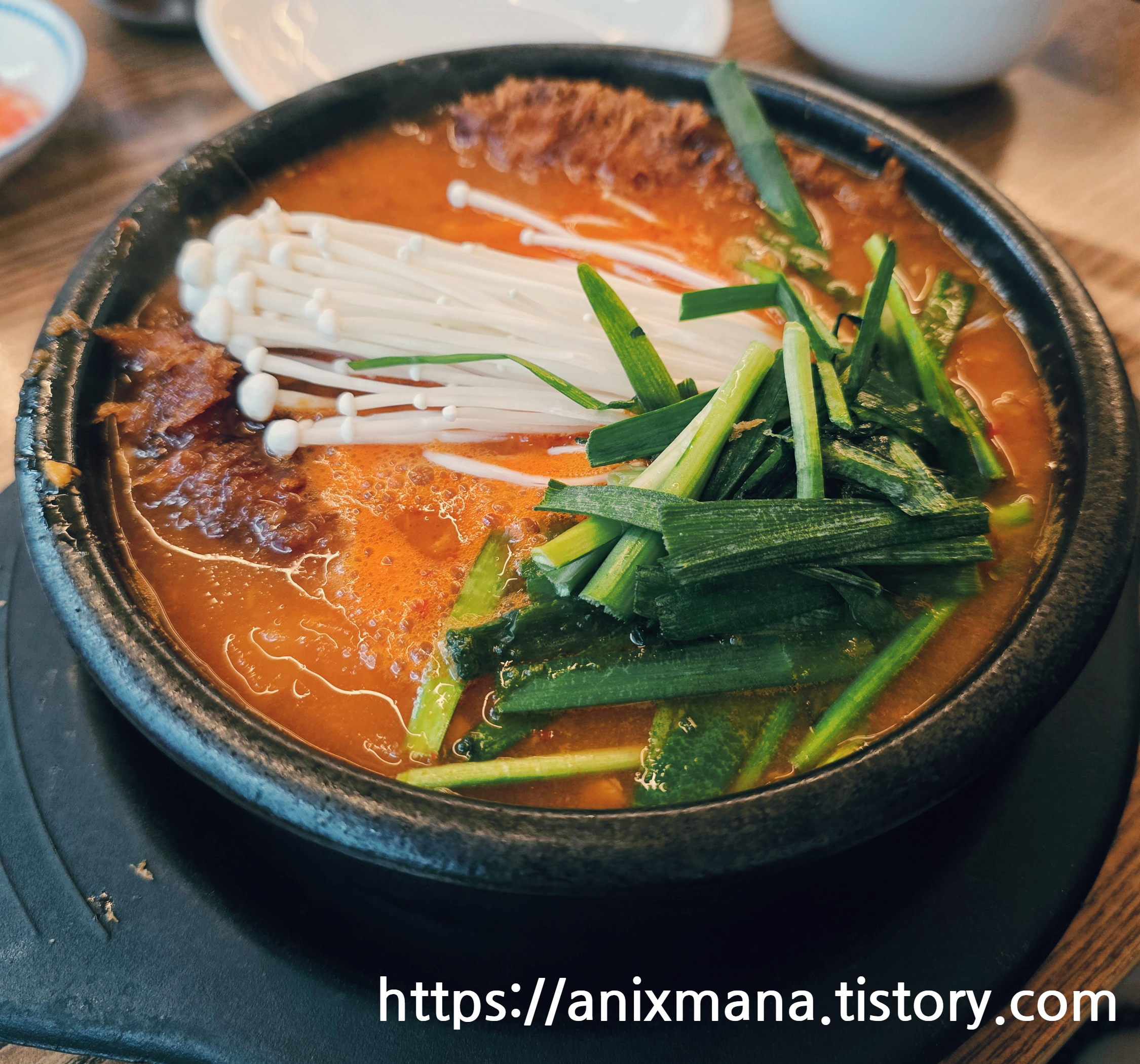 말 그대로 바삭하게 튀긴 돈까스를 김치찌개 안에 퐁당! 빠뜨려 주는 메뉴입니다~ ^^ 독특하쥬~ 맛이 어떠냐하믄! 진짜 진하게 끓인 김치찌개 안의 튀긴 고기가 들어있어요. 칼칼한 것이 좋습니다!! 김치찌개 자체도 맛이 괜찮아요.