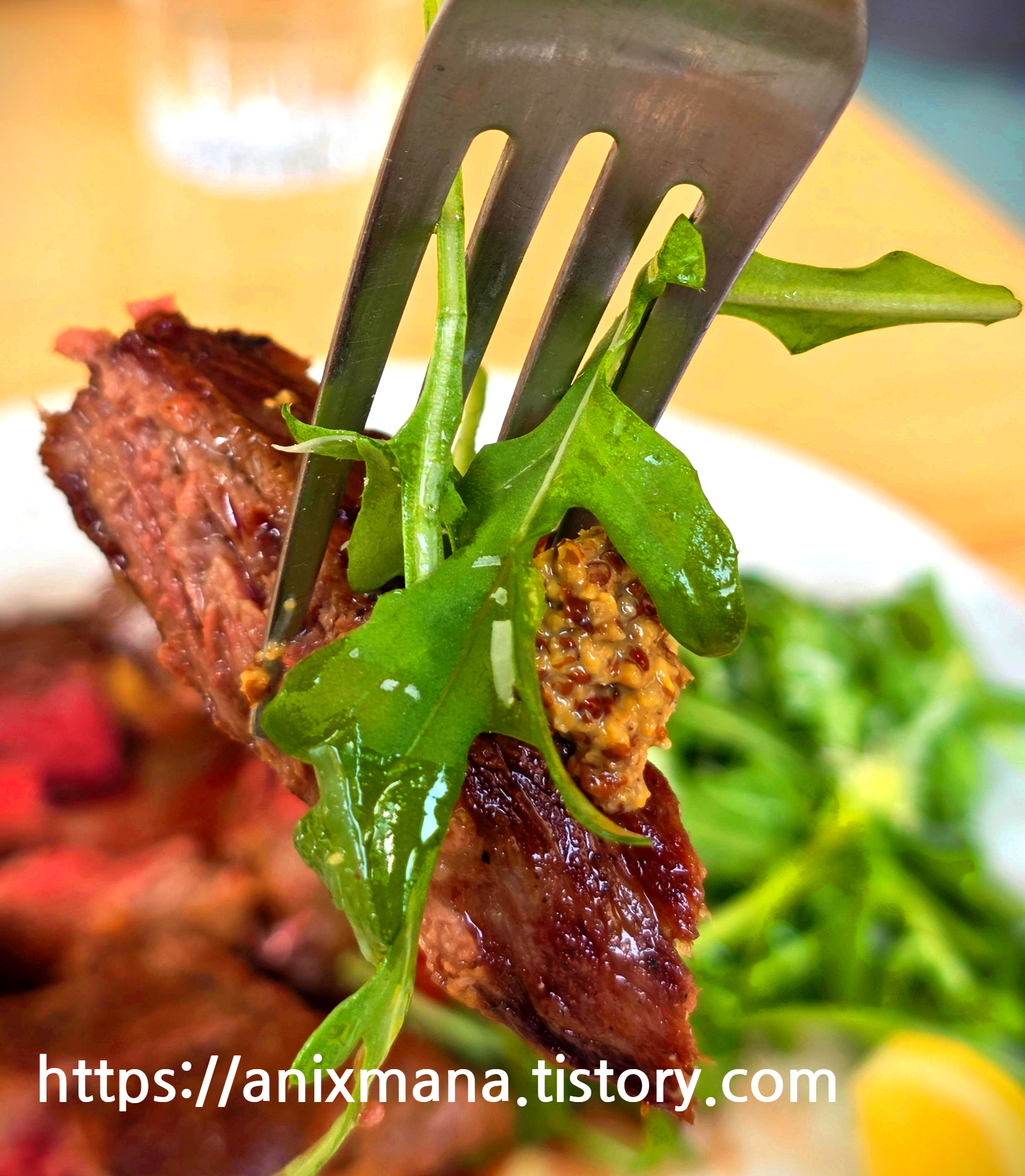 머스터드와 루꼴라까지 함께 곁들여 먹어봅니다. 고기는 일부 질긴 부위가 있었습니다. 하지만 가격대비 나쁘지 않다!!