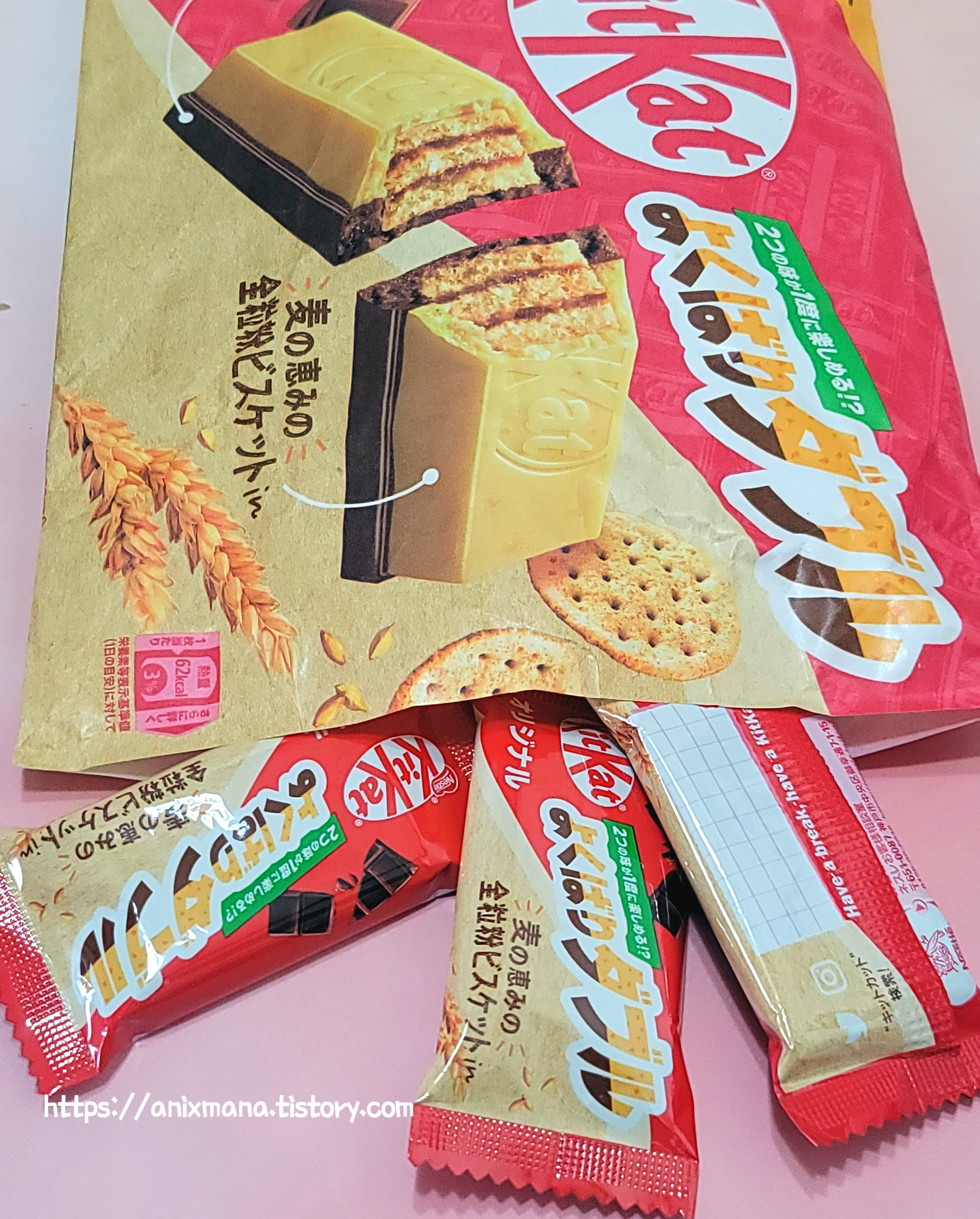 곡물맛 킷캣! 일본 발매 50주년 기념으로 만들었나봅니다. 개당 62칼로리! 초콜릿이니 당류가 높은 것은 어쩔 수 없죠. 그에 비해 단백질 함량은 많이 낮은 편....