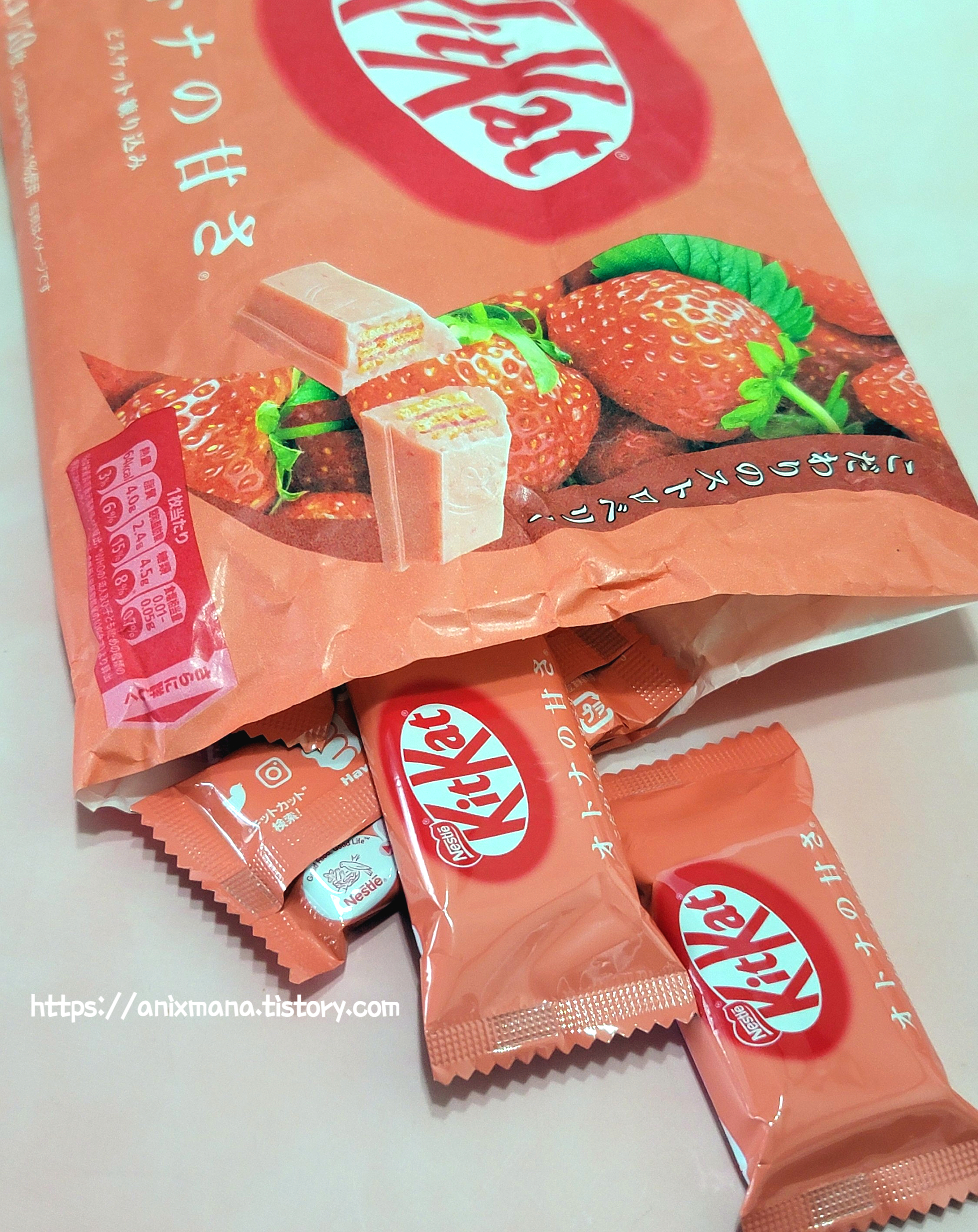 라즈베리 킷캣과 비슷해보이는 딸기 킷켓. 어른의 단맛이라는 문구가 눈에 들어옵니다.